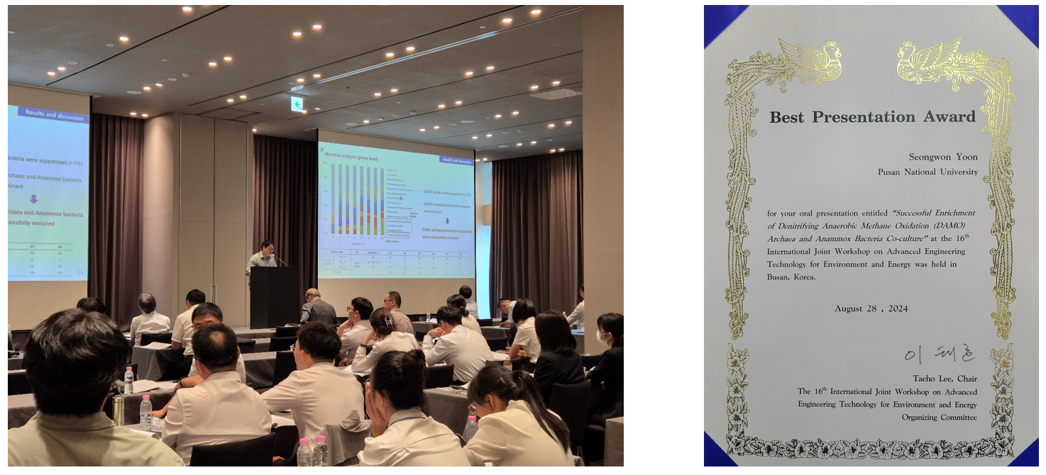 환경공학전공 환경미생물에너지연구실(지도교수 이태호) 소속 윤성원(23학번) 석사과정생이 8월26일부터 28일까지 3일간 부산대학교가 주최한 The