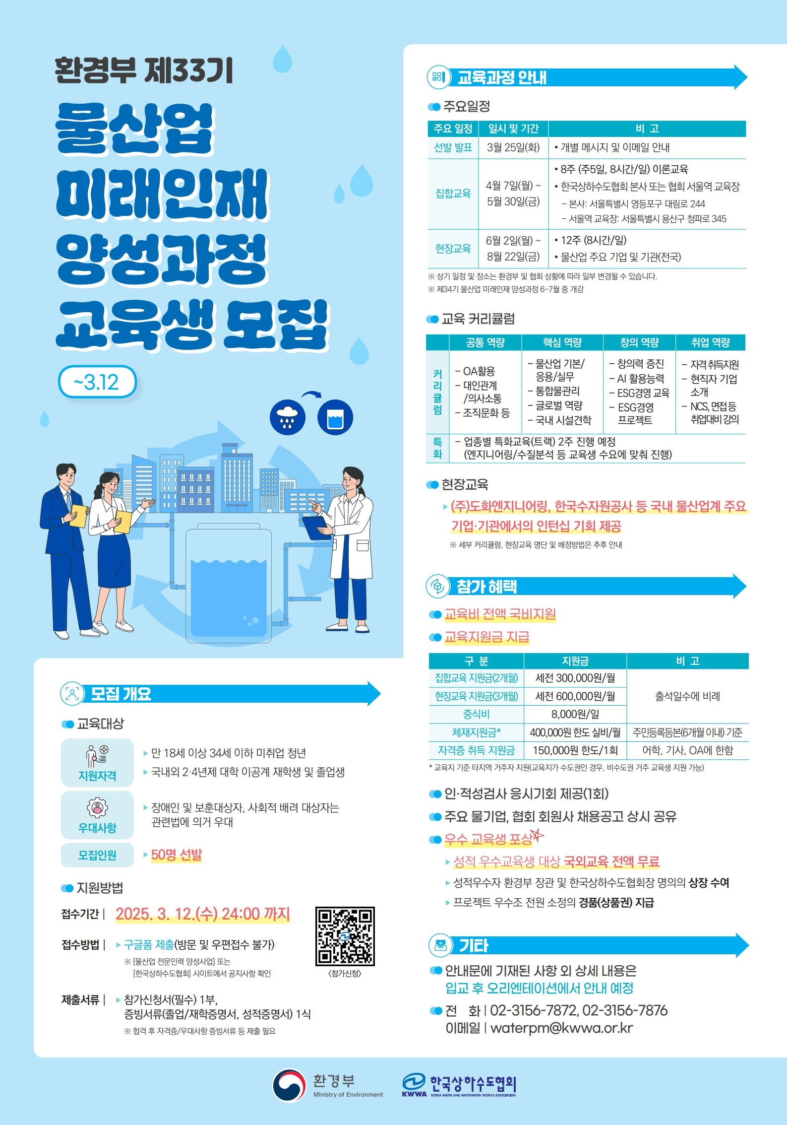 [한국상하수도협회] 환경부 제33기 물산업 미래인재 양성과정 교육생 모집 ( ~ 3. 12 수)
