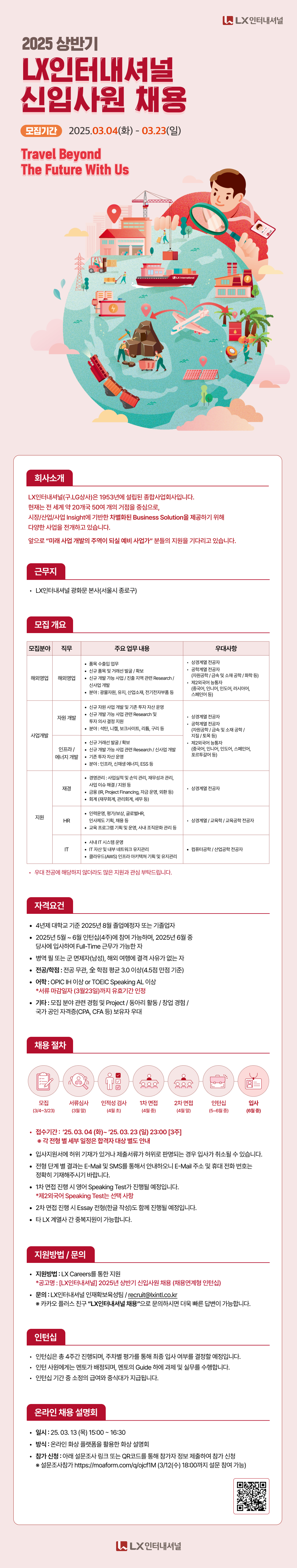 https://apply.lxcareers.com/ *공고명 : [LX인터내셔널] 2025년 상반기 신입사원 채용 (채용연계형 인턴십)